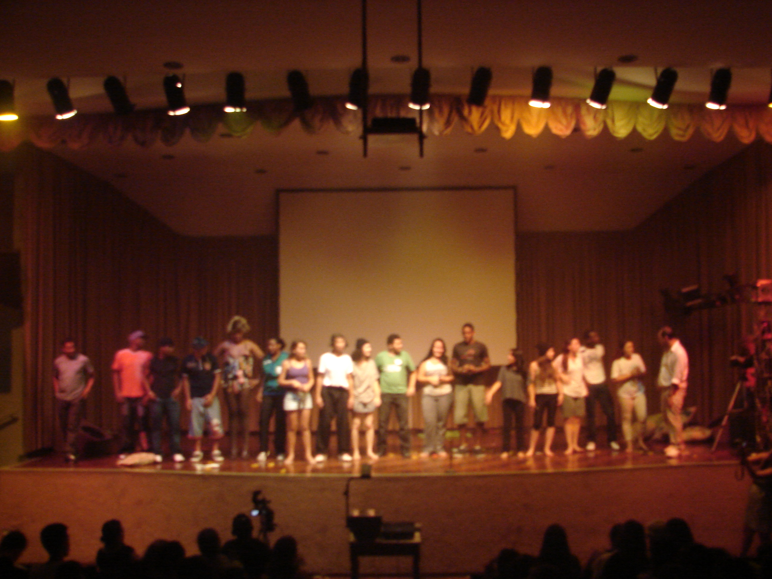 A celebração do Dia Mundial de Luta Contra a AIDS em Muriaé, nesta terça-feira (1º), teve como tema principal a luta contra o preconceito. Para isso, a Secretaria Municipal de Saúde através do programa DST/AIDS, realizou na segunda-feira (30) às 19h no Teatro do Colégio Santa Marcelina uma peça teatral “Imprudências”, uma reflexão dramática sobre DST/AIDS de uma adaptação das obras “A Gota d’gua” de Chico Buarque e “A Mancha Rocha” de Plínio Marcos, a peça teatral reuniu estudantes, professores, pessoas de Muriaé e região.